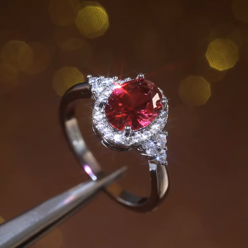 Click here to Chat on WhatsAppOval Red Stone Zircon Ring for Women